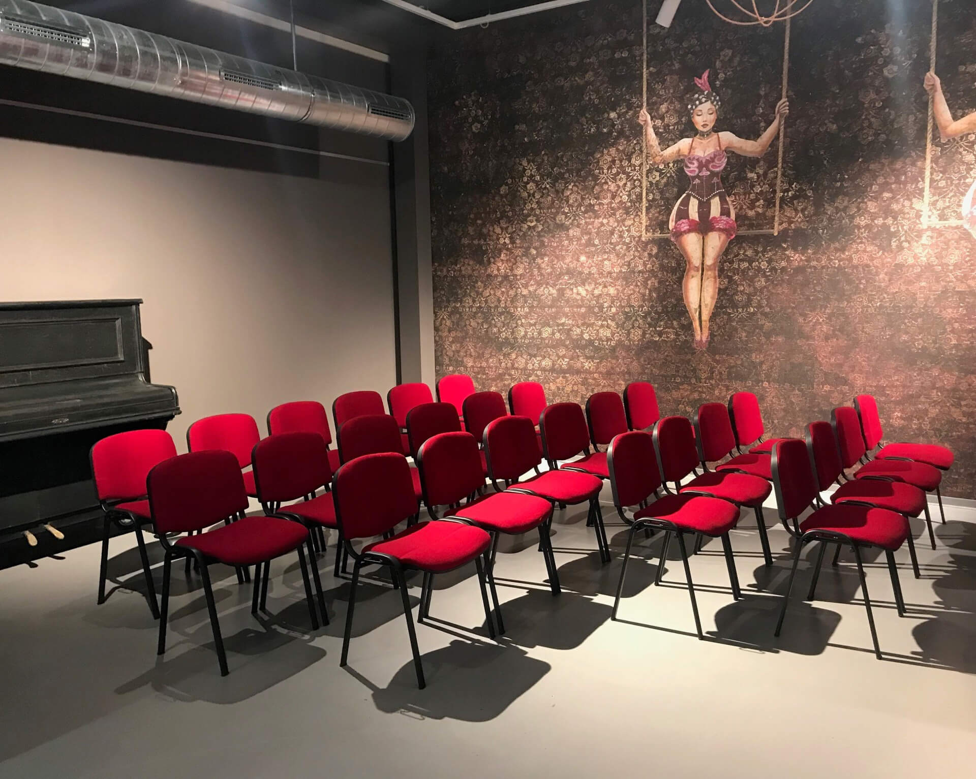 La salle « Comedy Show », de 50 places assises, convient parfaitement à des événements tels que des vernissages, expositions et masterclasses.