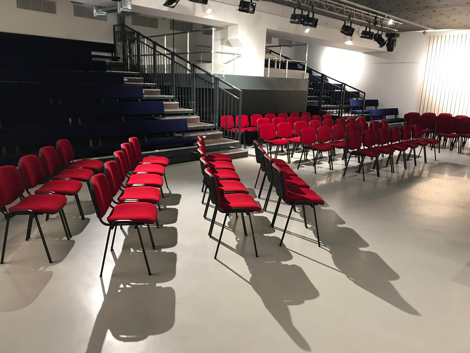 Pour l’organisation des concerts de ses élèves et des autres événements, notre école peut profiter de 2 salles de spectacle, équipées de matériel technique (scène modulable, régie son/lumière, gradins, …).