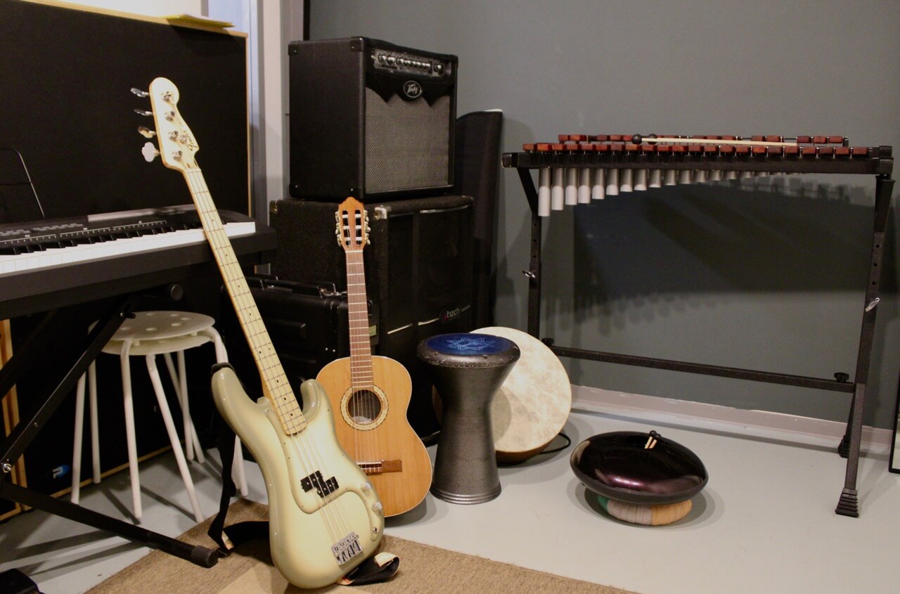 Notre école peut profiter de 4 espaces, dédiés à nos cours individuels et d’un espace plus grand pour nos ateliers de groupe. Tous nos studios sont dotés d’un système audio, d’amplificateurs et d’instruments de musique. Nos professeurs disposent d’un ordinateur et d’Internet pour la recherche de vidéos musicales, de musique digitale et de partitions.